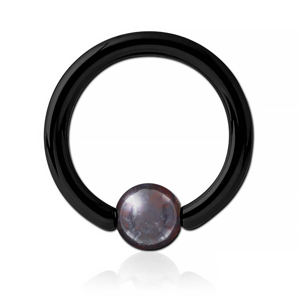 Anneau en acier noir et boule en pierre Jaspe Bréchique.