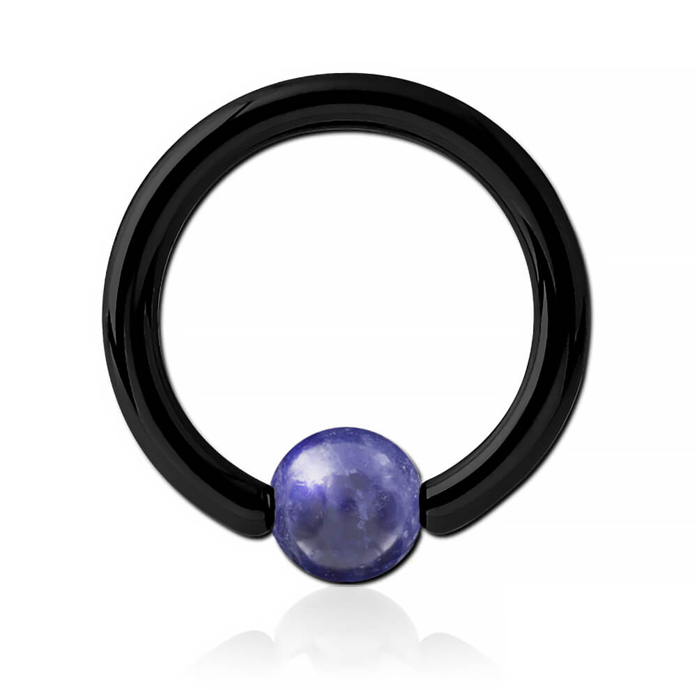 ABSN020 - Anneau acier noir avec boule pierre Sodalite