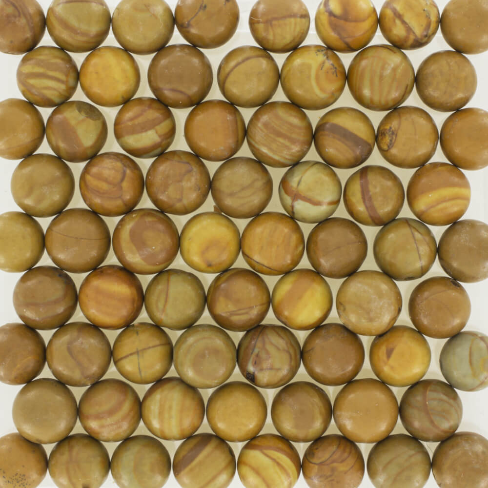 Le Jaspe Bois est une forme de quartz microcristallin affichant des rayures jaune clair à ocre. Il est issu de débris siliceux consolidés (fragmentés ou agglomérés), avec des pigments d’oxyde de fer pour les couleurs jaunes.