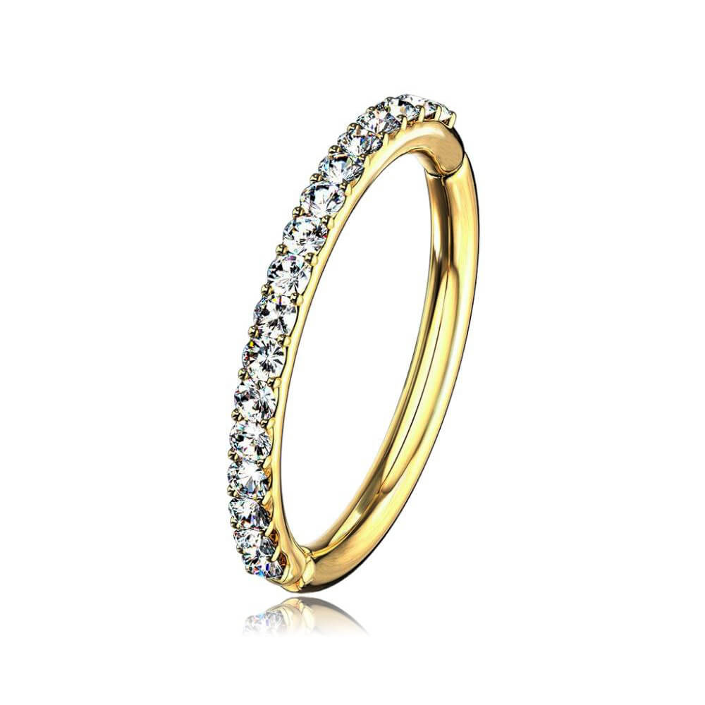 Avec ses 2mm d'épaisseur, son plaqué or 18 carats de qualité et ses strass en cristal, cet anneau clicker apportera une touche très chic.