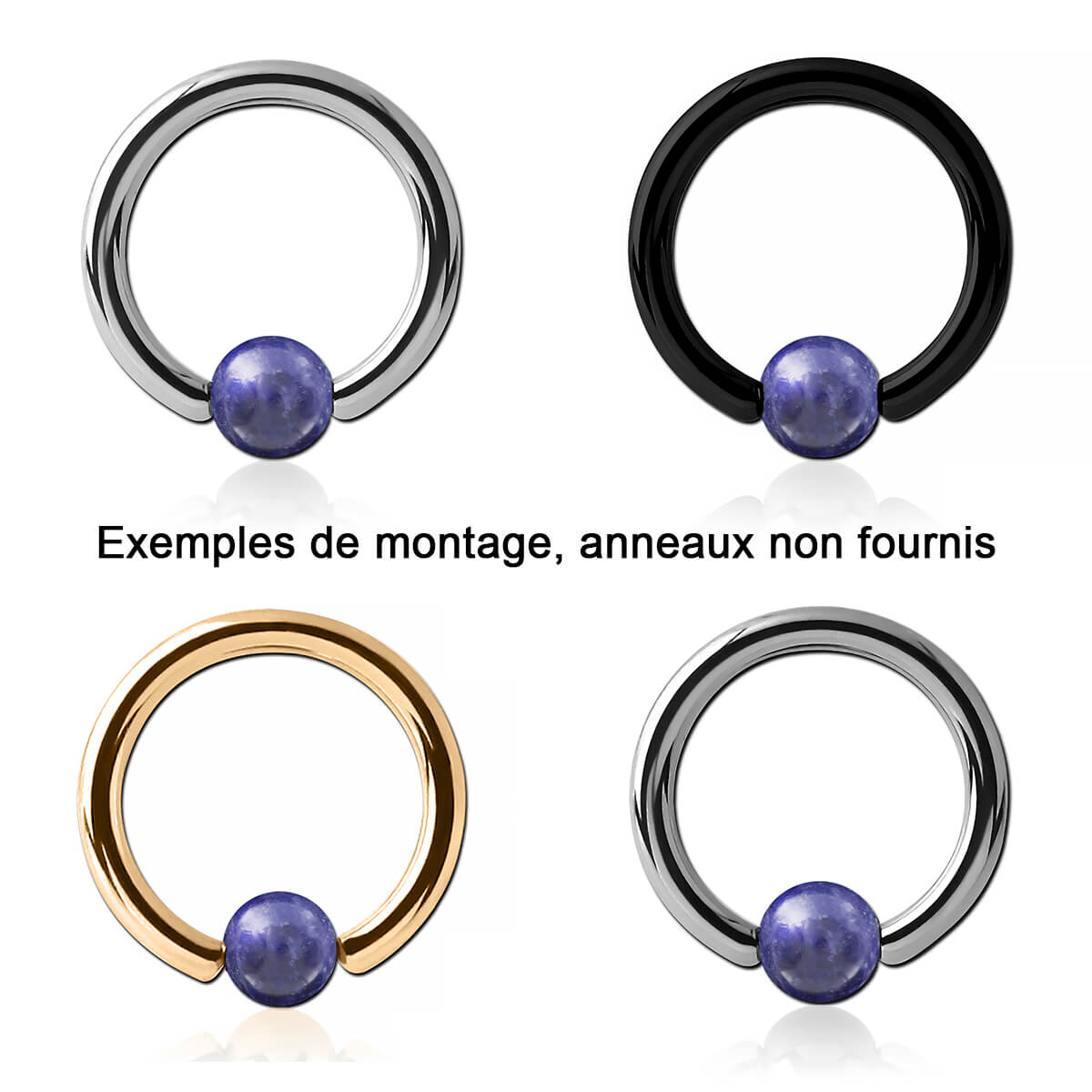 Boule pierre Sodalite à clipser sur anneau de piercing (anneau non fourni).