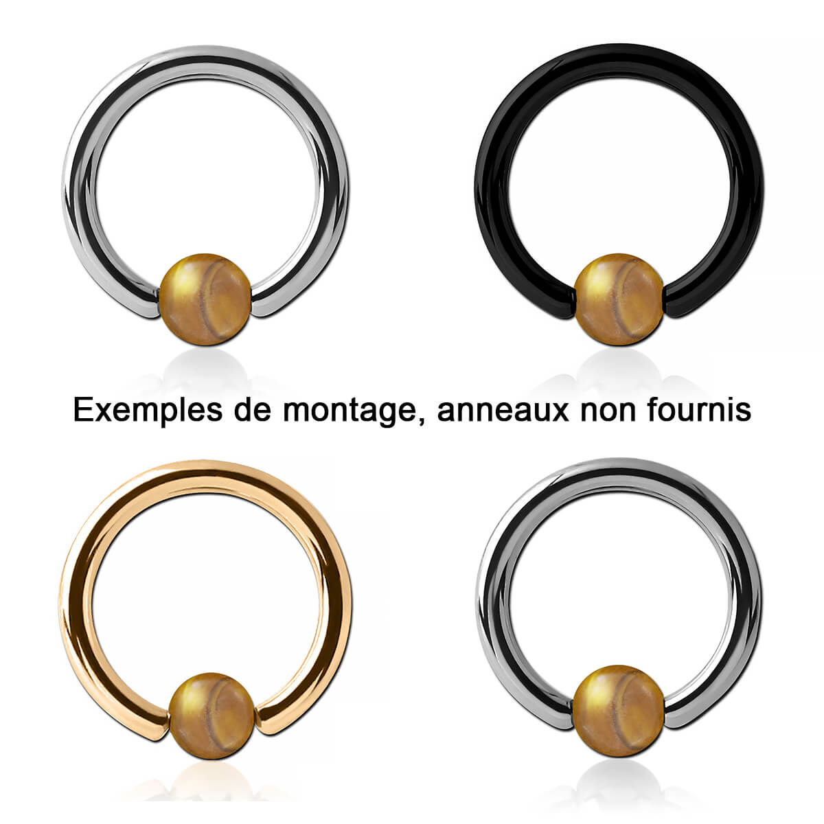 Boule pierre Jaspe Bois à clipser sur anneau de piercing (anneau non fourni).