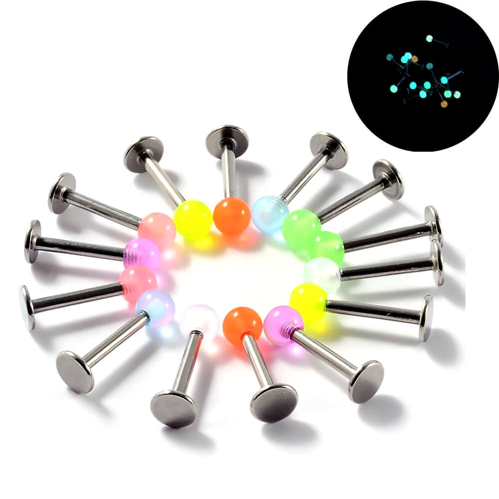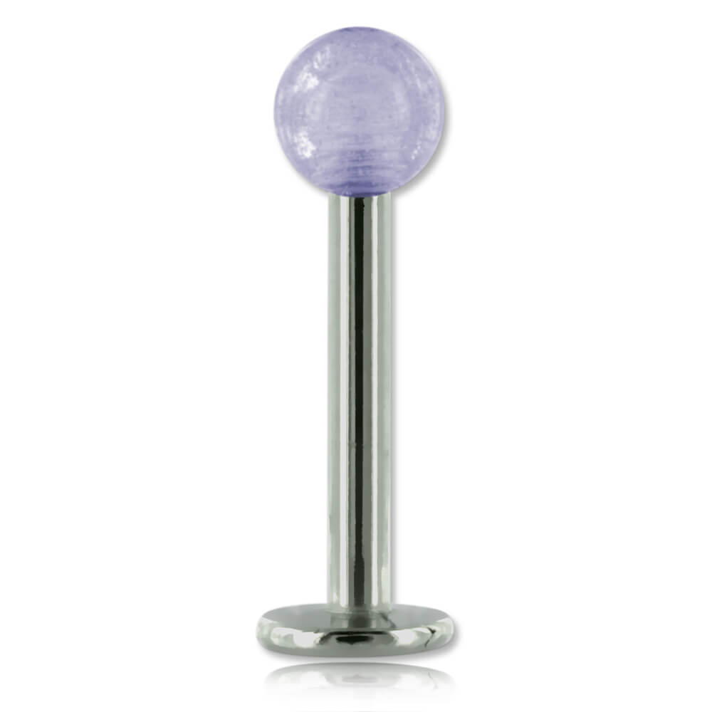 Micro labret en acier chirurgical 316L, boule en acrylique phosphorescent.