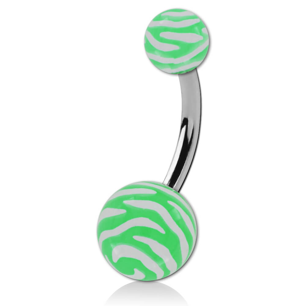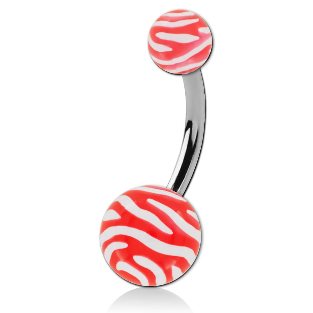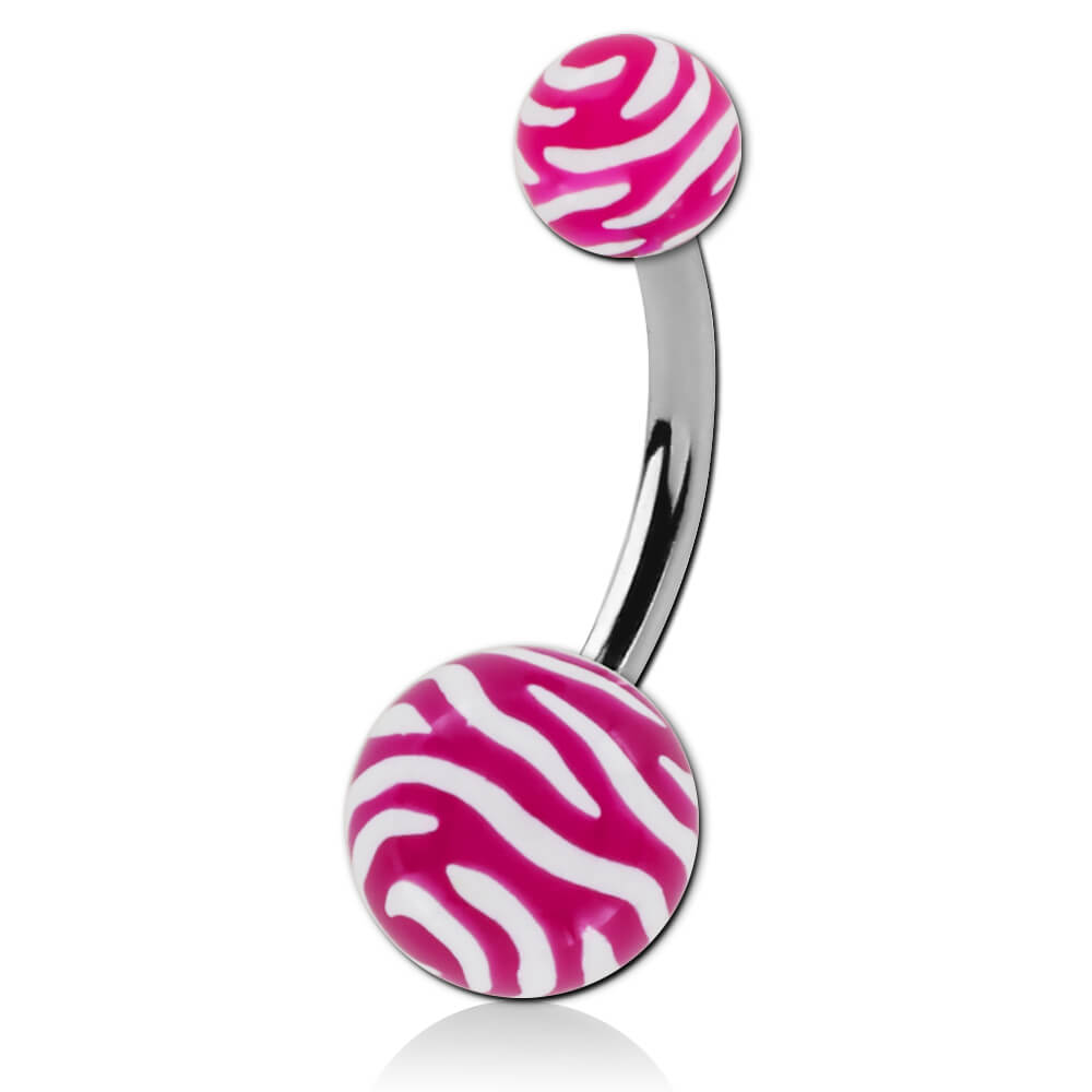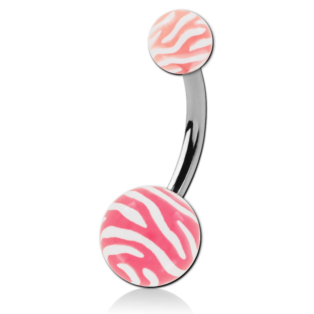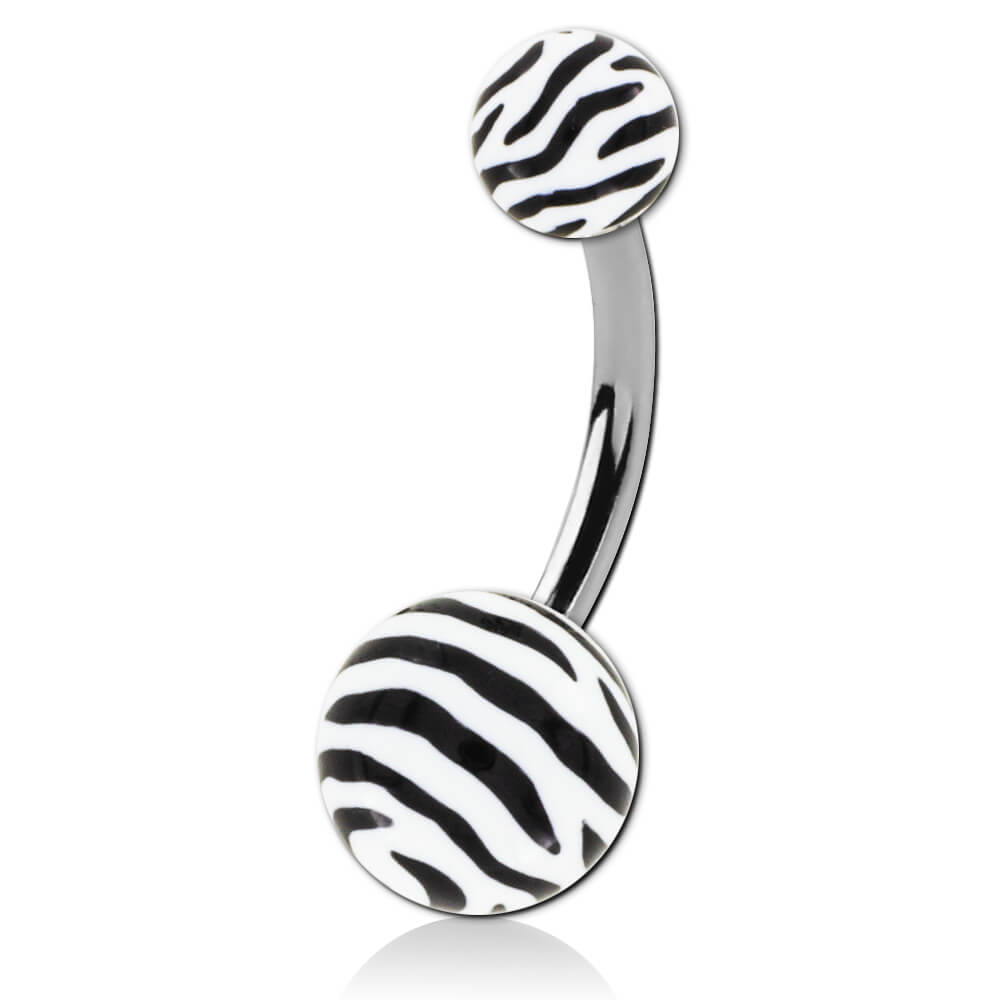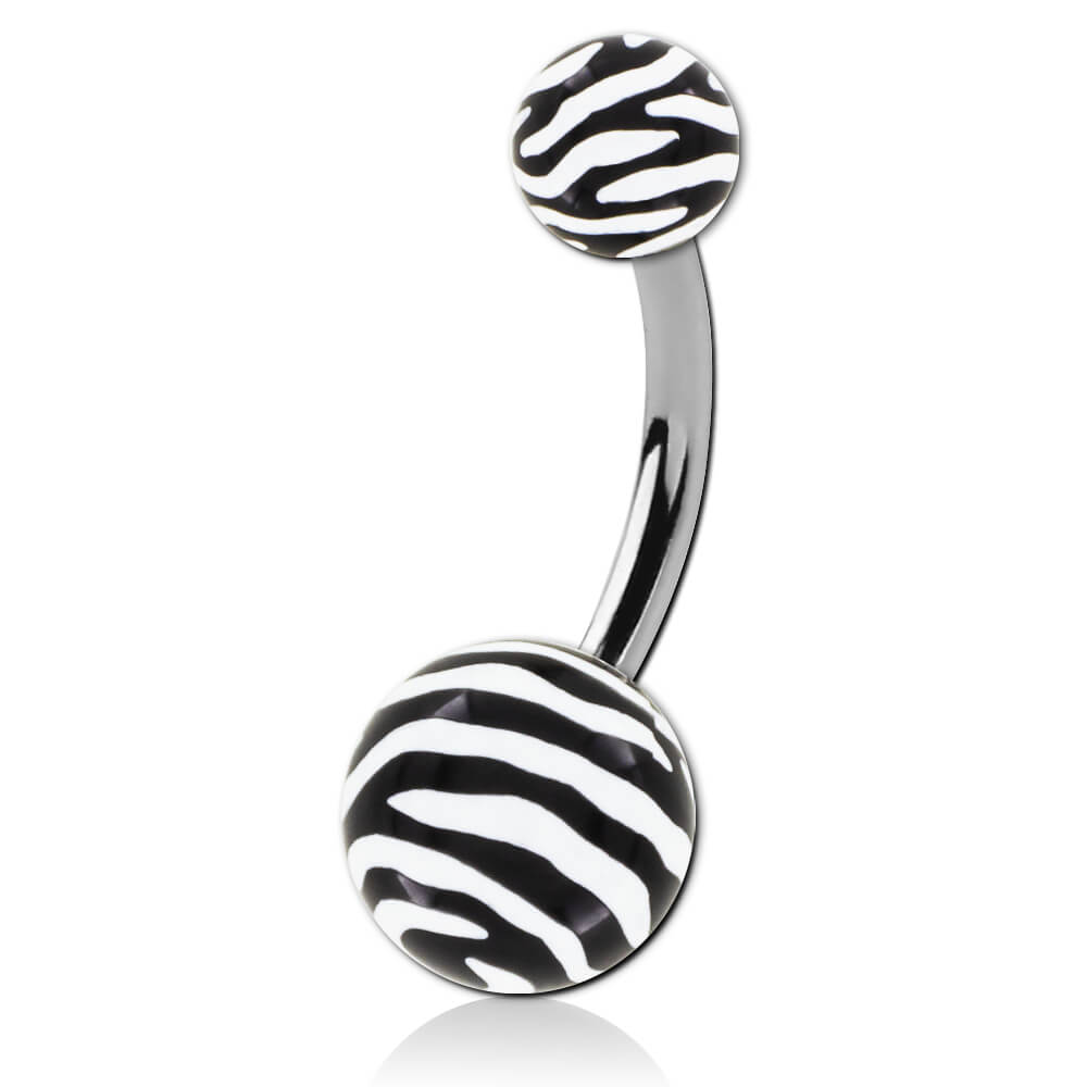 Banane de nombril en acier chirurgical avec boules en acrylique Zébré.