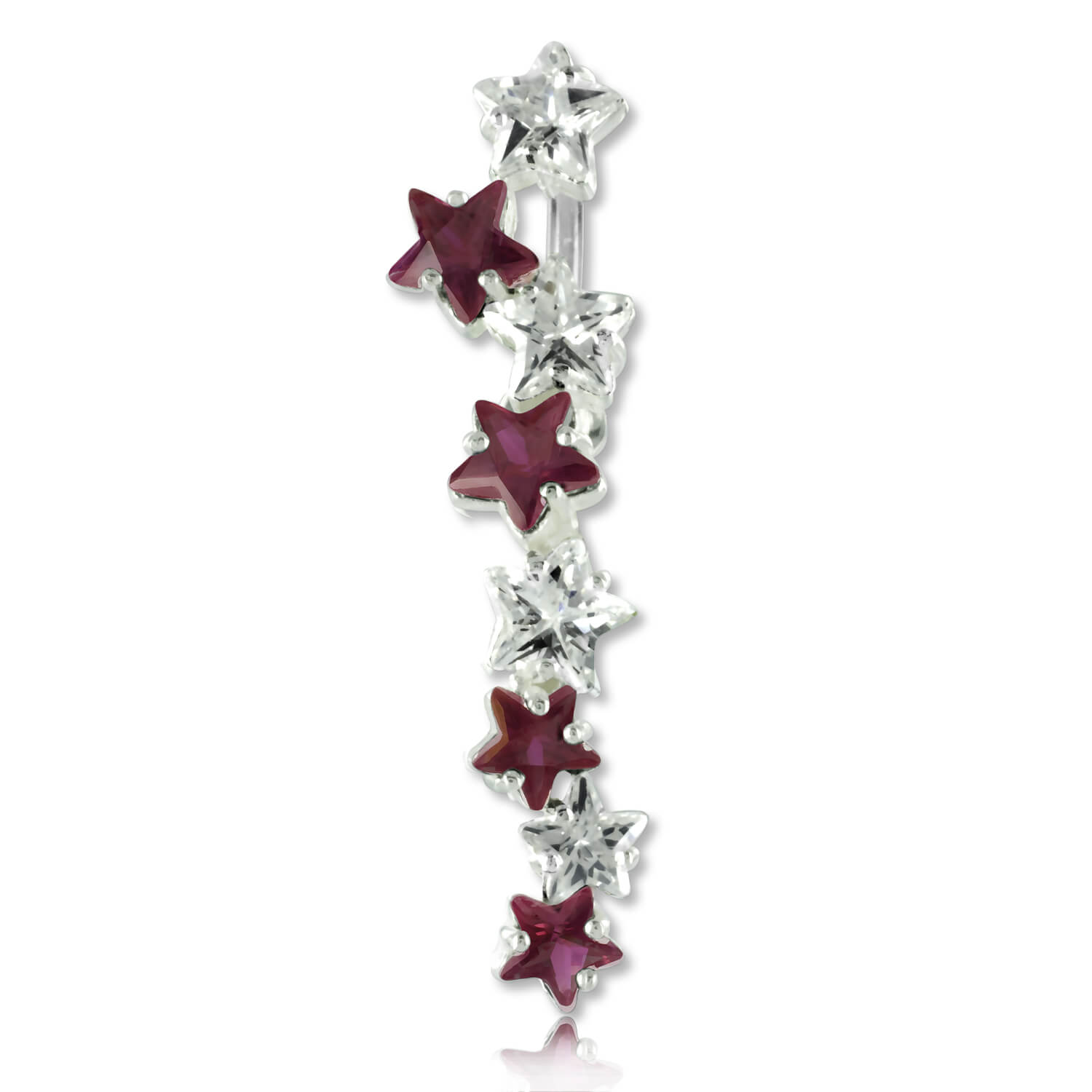 Banane de nombril inversée en argent, articulée, avec cristal de Swarovski, motif Stardust.
