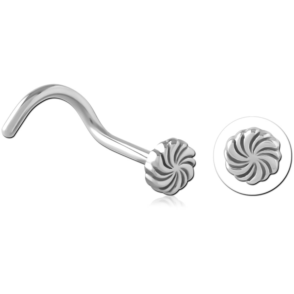 Stud de nez forme tire-bouchon en acier chirurgical 316L, avec motif Tourbillon.